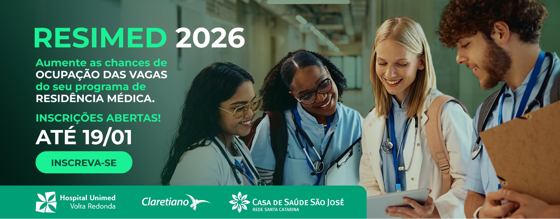 - Conveniência e praticidade em um único processo seletivo para múltiplas instituições e Programas de Residência Médica.